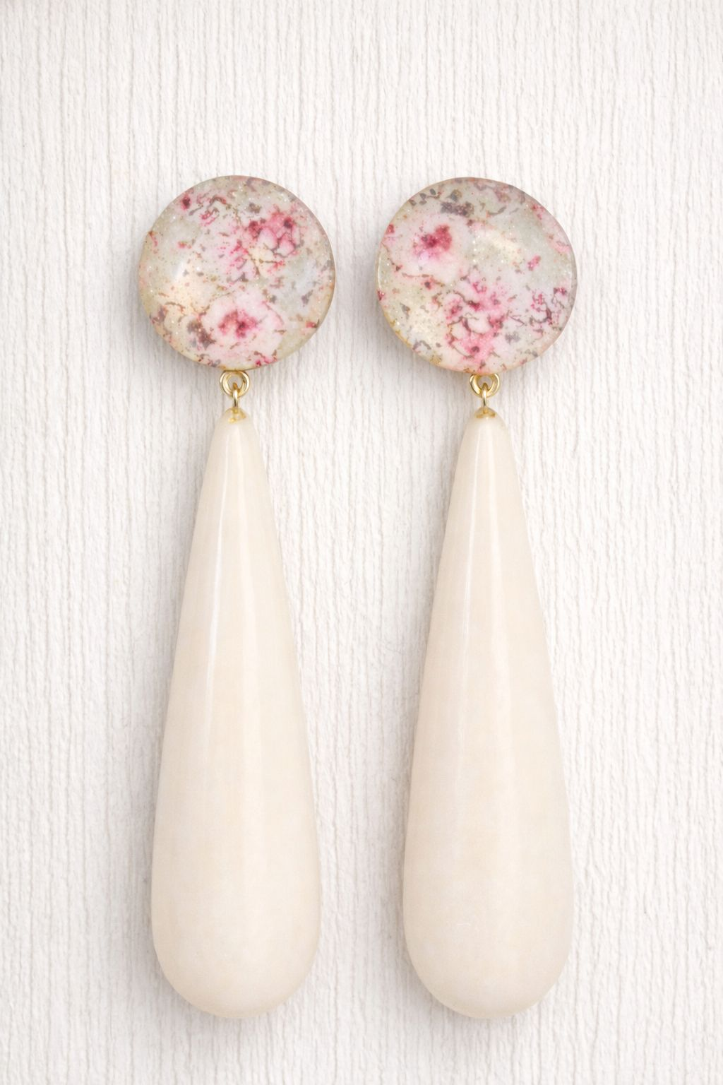 Pendientes de resina, color hueso hechos a manoPendientes de resina, color hueso hechos a mano
