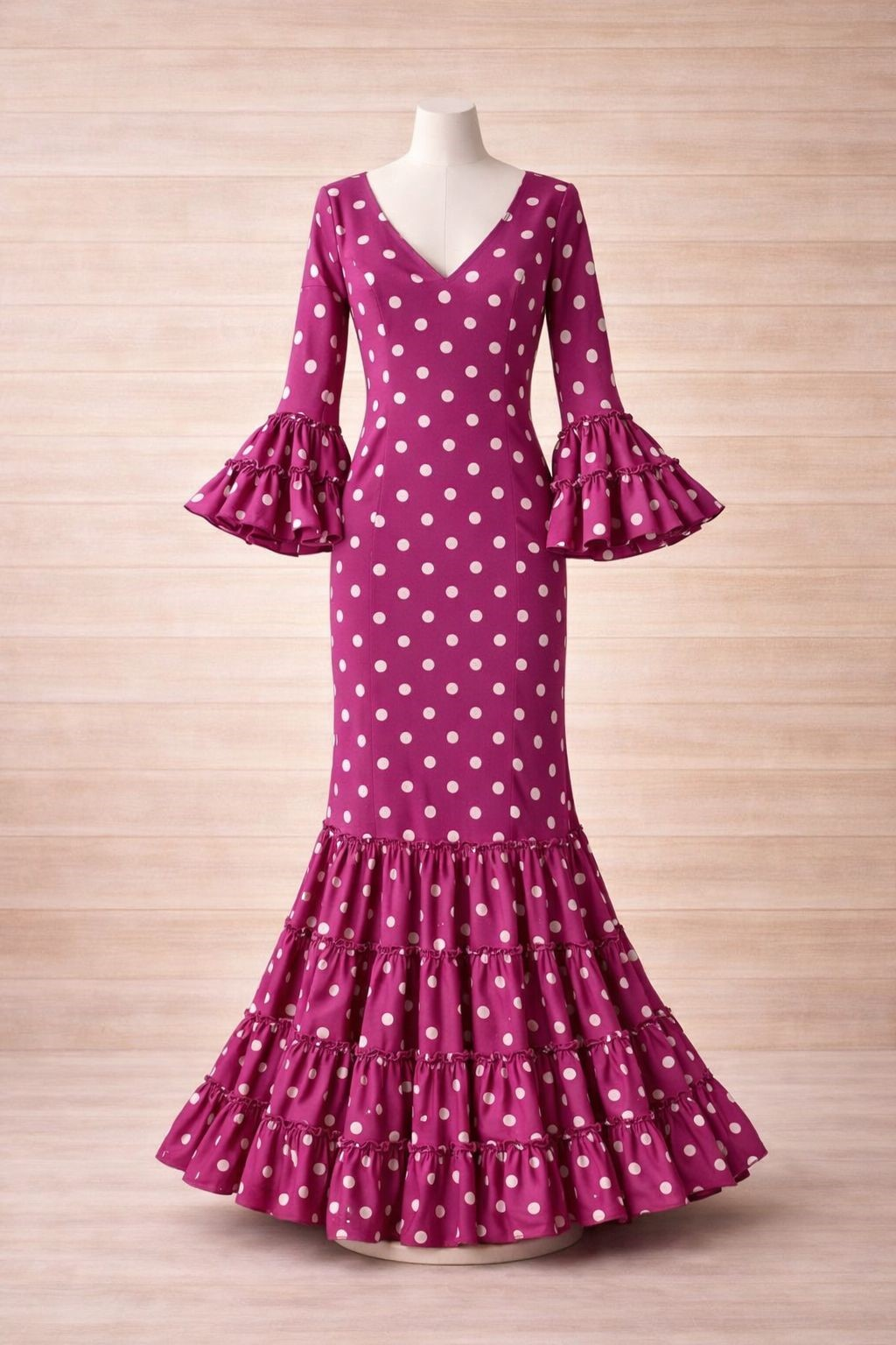 Traje de flamenca, canastero buganvilla, elaborado en Sevilla, confeccionado en Strech